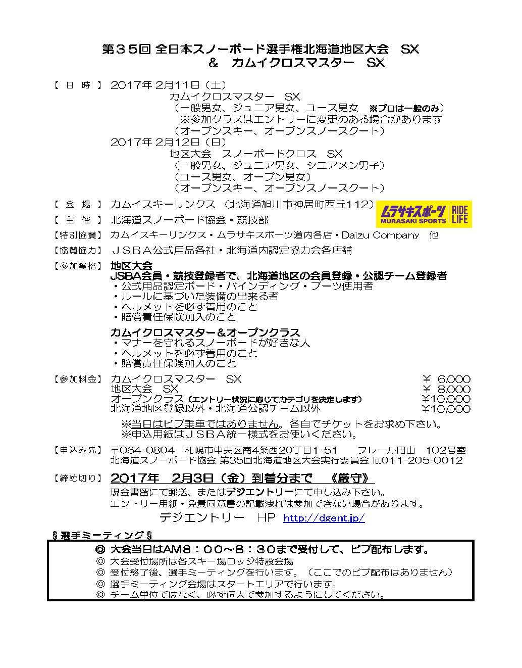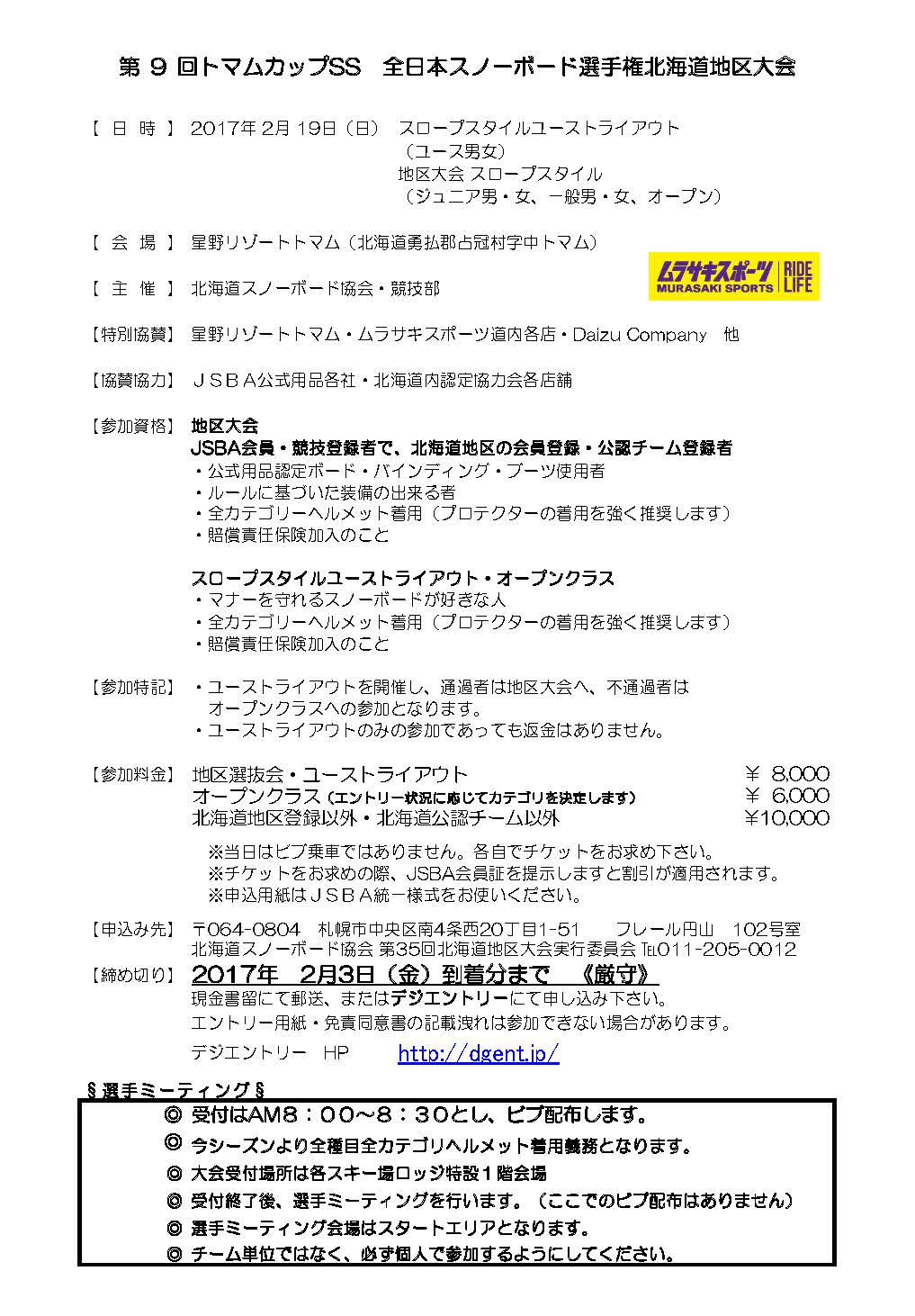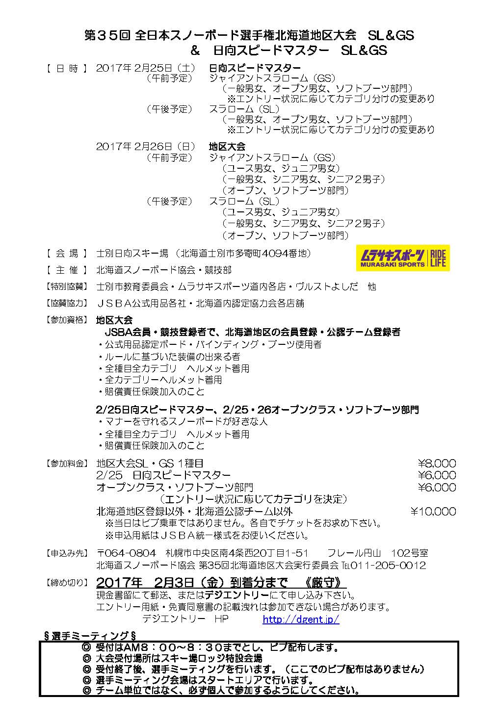 2016〜2017シーズン 北海道スノーボード協会大会カレンダー