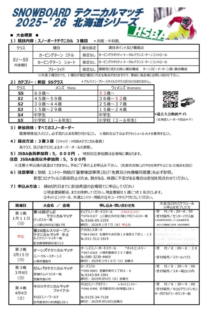 ’25‐’26HSBAテクニカルマッチシリーズ開催要項! 2025年12月21日 最終更新日時 : 2025年12月21日 北海道スノーボード協会 2025ー2026テクニカルマッチシリーズの開催要項&申込用紙をアップしました! 25テクマッチ共通申込書ダウンロード